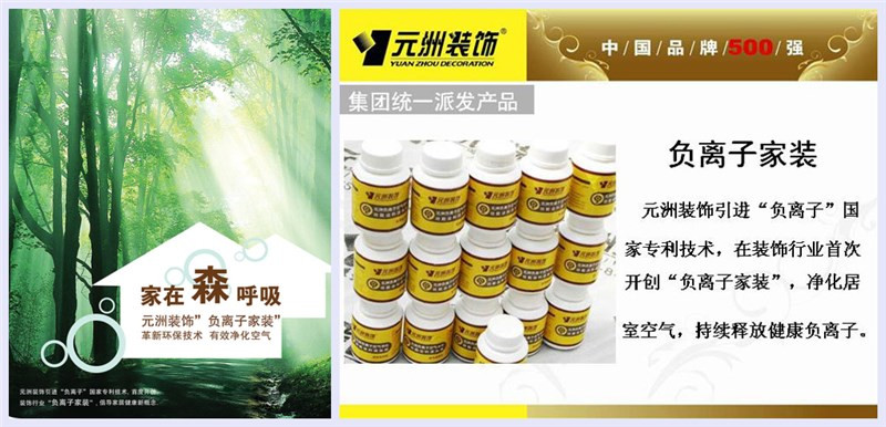 作为淮南装饰公司的领军品牌,元洲装饰淮南公司在我市首次推出了环保装修新概念——负离子装修,让您在家里享受森林中的呼吸。元洲装饰“负离子家装”,是选择自然界唯一天生带电的高品质极性无机材料,采用高科技的加工手段与材料复合技术制备的多功能空气净化材料,具有高效性、多功 能、安全性、持久性等特点。这些元洲的材料都通过了国家建筑材料质量监督局CMA认证、E1级标准与国际环保标准接轨。也就是说凡是房屋装修的业主,只要 使用了我们元洲装饰公司提供的负离子添加剂,那么室内空气就跟森林里面的差不多,这种元洲负离子添加剂不仅能将甲醛等房屋装修污染吸附转化为CO2和 H2O,还能不断释放负离子,所以说元洲负离子装修,让您在家里享受森林中的呼吸。
